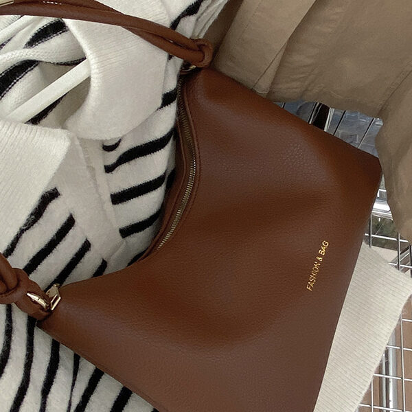 Vintage Solid Color PU Tote Bags Accessories CARAMEL-LARGE SIZE