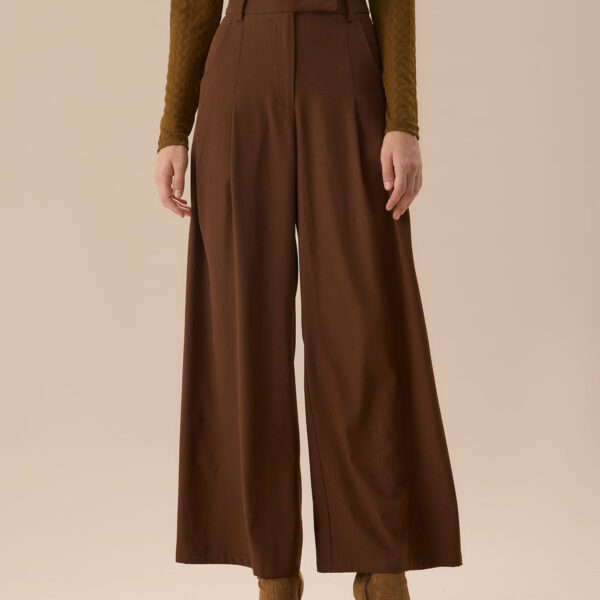 The Brown High Waisted Velvet Wide Leg Pants
