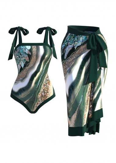 ROTITA Green Marble Print One Piece Swimwear and Cover Up