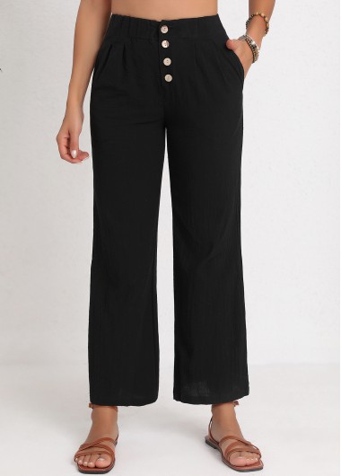 Bowknot Patchwork Black Elastic Waist High Waisted Pants