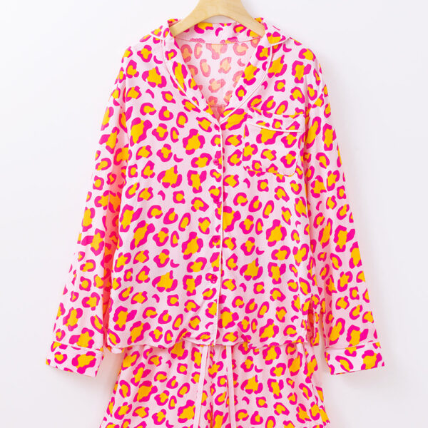 Leopard Long Sleeve Shirt and Shorts Pajama Set