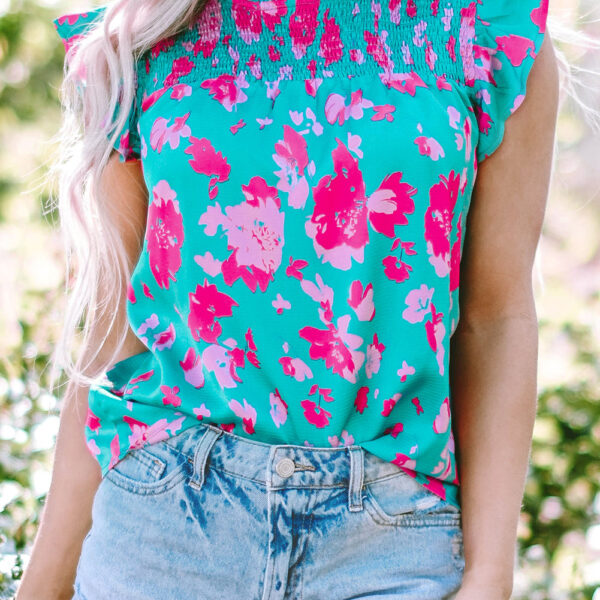Aleah Smocked Ruffle Flutter Sleeve Peplum Blouse