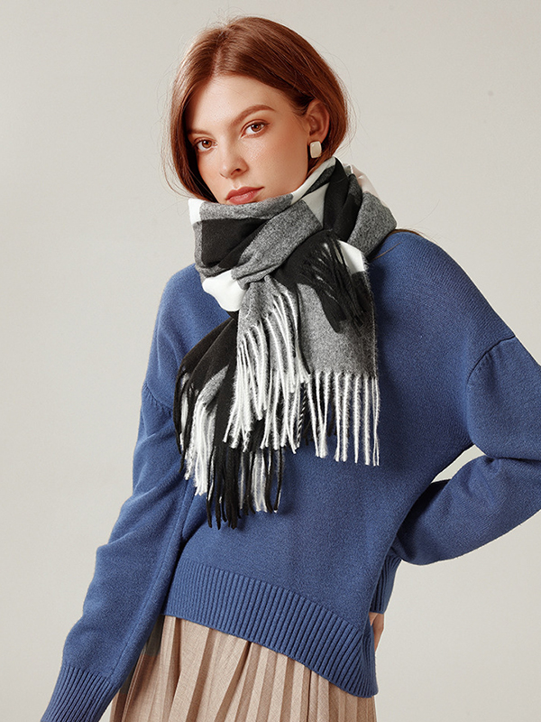 Fashion Keep Warm Tasseled Checkered Shawl&Scarf BLACK WHITE-One_size