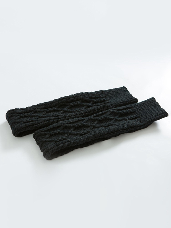 Home Wear Keep Warm Jacquard Solid Color Stockings Accessories BLACK-One_size