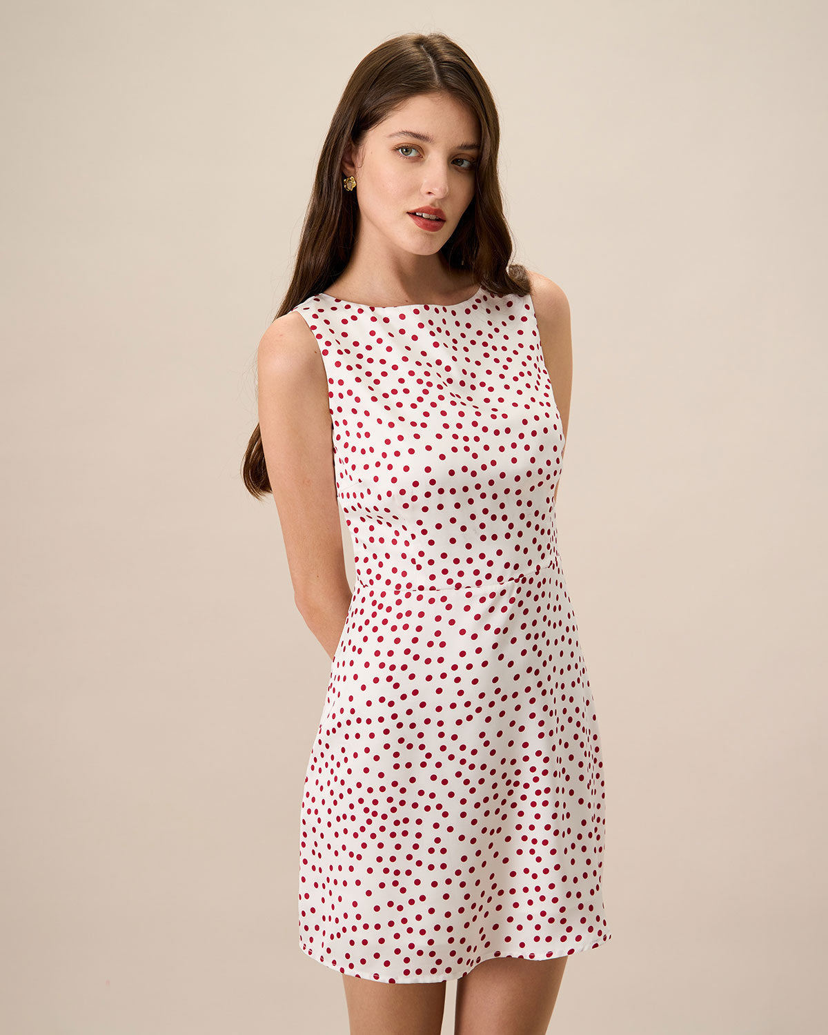 Fabric:This Polka Dot Mini Dress is made of Recycled Polyester. Recycled polyester is a sustainable alternative to traditional polyester, crafted from post-consumer plastic bottles. Through a process of melting, spinning, and weaving, these materials are transformed into high-quality polyester fibers. Description:This dress features a classic boat neckline that elegantly frames the collarbone, offering a timeless appeal. The white fabric is adorned with charming polka dots, adding a touch of vintage flair to the modern mini silhouette. Perfect for a variety of occasions, from casual outings to semi-formal events, this dress effortlessly combines style and comfort. Details:- Occasion: Daily- Fabric Stretch: No Stretch- Dress Type: Skater- Silhouette: A-Line- Fabric: Recycled Polyester 100.0%- Lining: Polyester 100.0%- Material: Polyester